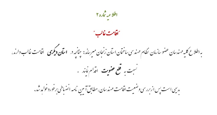 اطلاعیه شماره 2 «اقامت غالب»