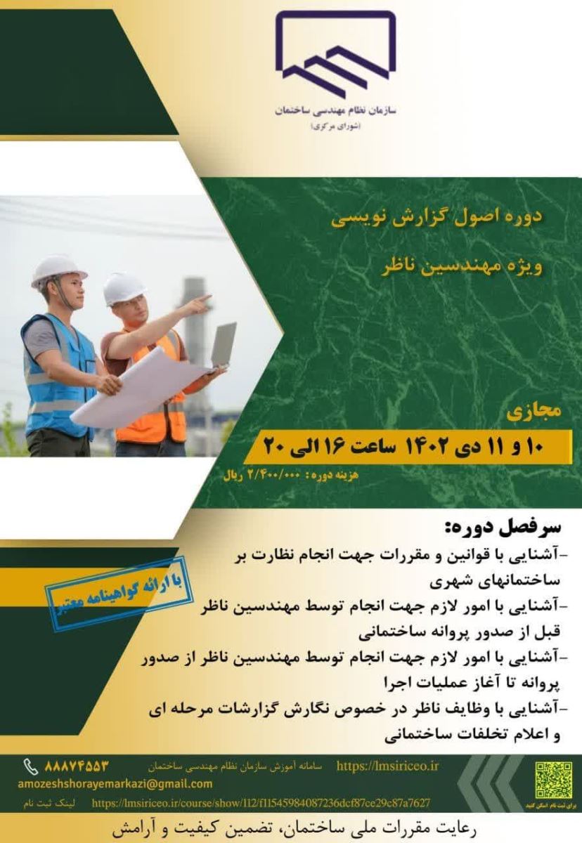 ⚜️قابل توجه اعضای محترم سازمان ☀️ دوره آموزشی اصول گزارش نویسی ( ویژه مهندسین ناظر )