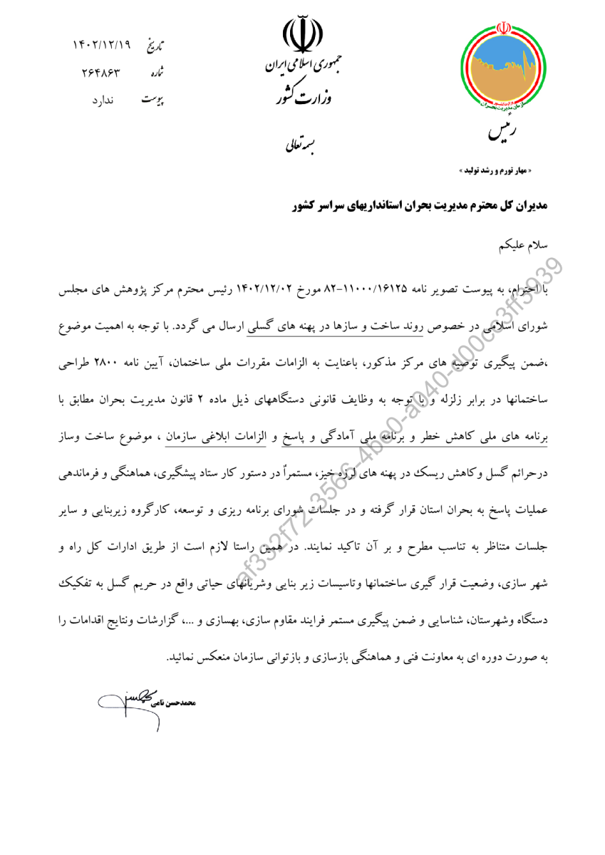 اهم راهکارهای پیشنهادی در زمینه کاهش ریسک ناشی از زلزله در پهنههای گسلی ابلاغیه مرکز پژوهشهای مجلس شورای اسلامی در خصوص اهم راهکارهای پیشنهادی در زمینه کاهش ریسک ناشی از زلزله در پهنههای گسلی منظم به گزارش ملاحظات ساخت و ساز در حریم گسلها