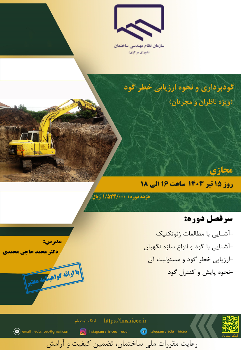 دوره آموزشی گودبرداری و نحوه ارزیابی خطر گود (ویژه ناظران و مجریان)