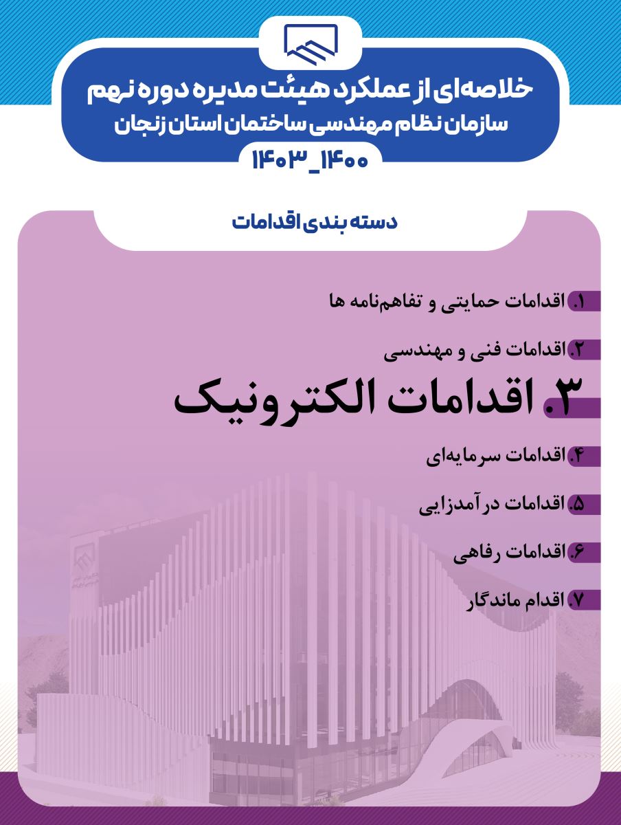 بخش سوم عملکرد هیئت مدیره دوره نهم سازمان نظام مهندسی ساختمان استان زنجان (۱۴۰۳_۱۴۰۰)