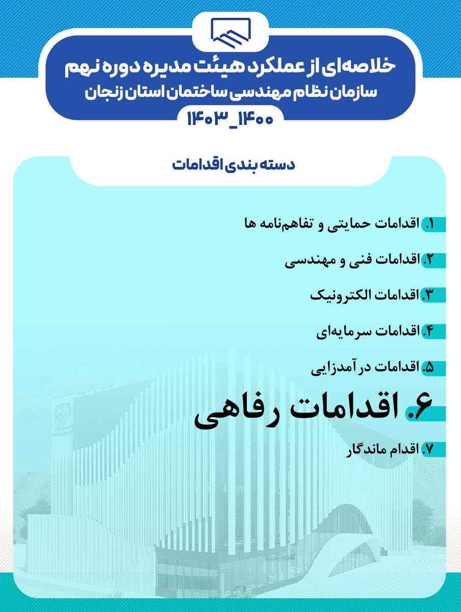بخش ششم عملکرد هیئت مدیره دوره نهم سازمان نظام مهندسی ساختمان استان زنجان (۱۴۰۳_۱۴۰۰)