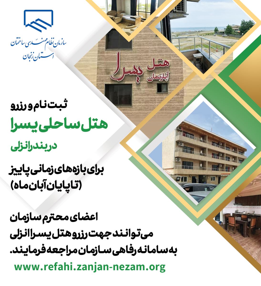»»» رزرو هتل یسرا انزلی از طریق سامانه رفاهی«««