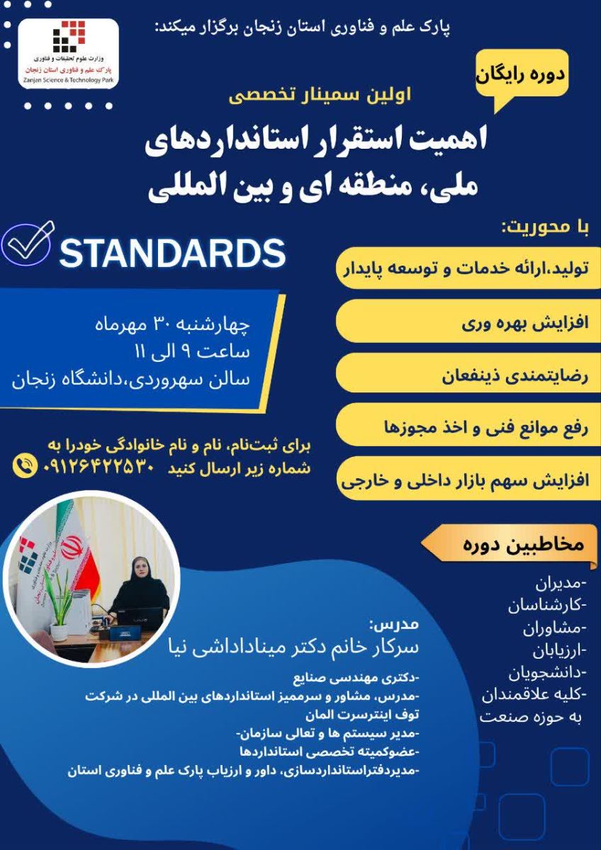 💠اولین سمینار تخصصی اهمیت استقرار استانداردهای ملی، منطقهای و بینالمللی 🔷️با محوریت: