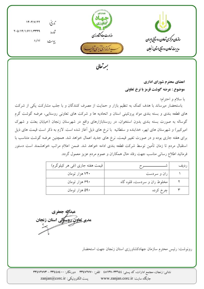 ↕️عرضه گوشت قرمز با نرخ تعاونی