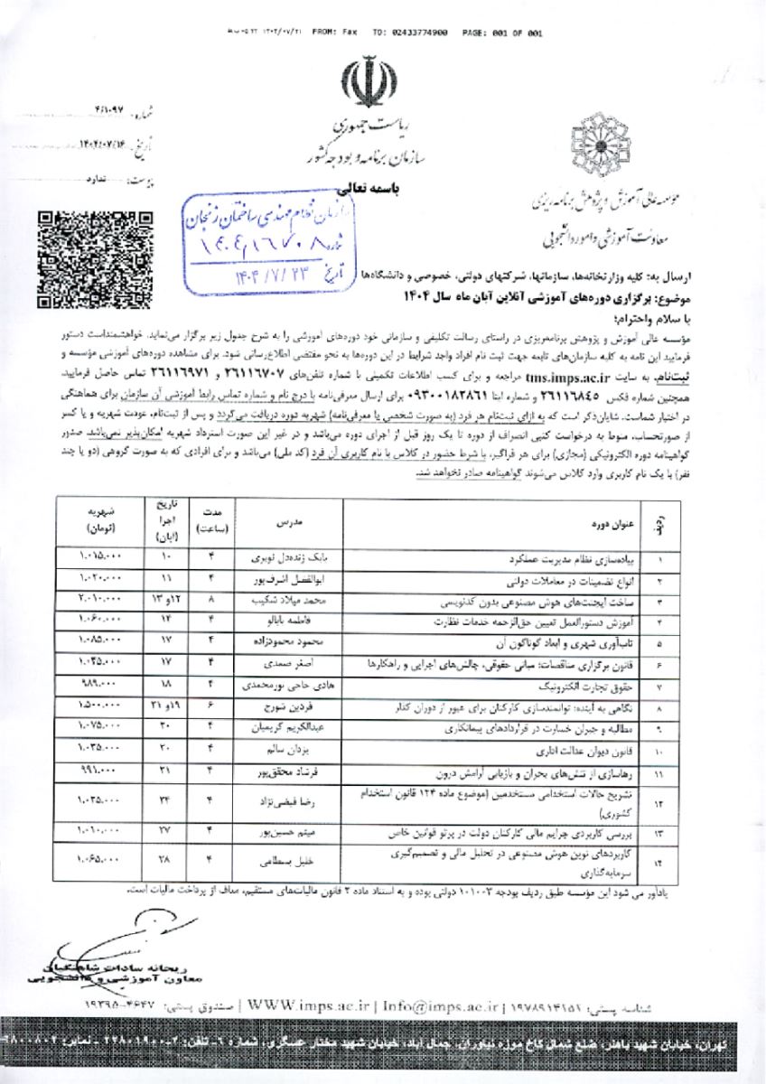 برگزاری دوره آموزشی آنلاین آبان ماه 1404