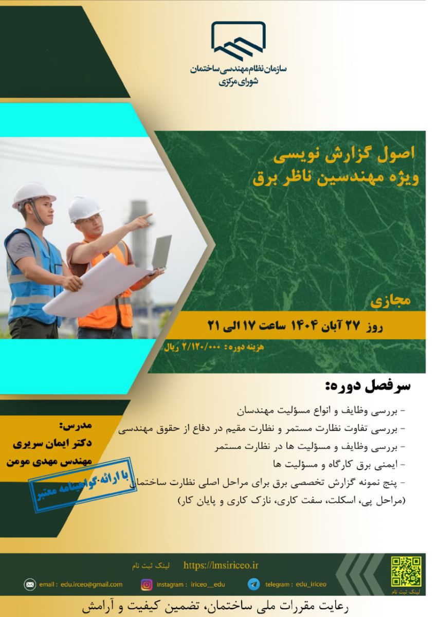دوره آموزشی اصول گزارش نویسی (ویژه مهندسین ناظر برق)