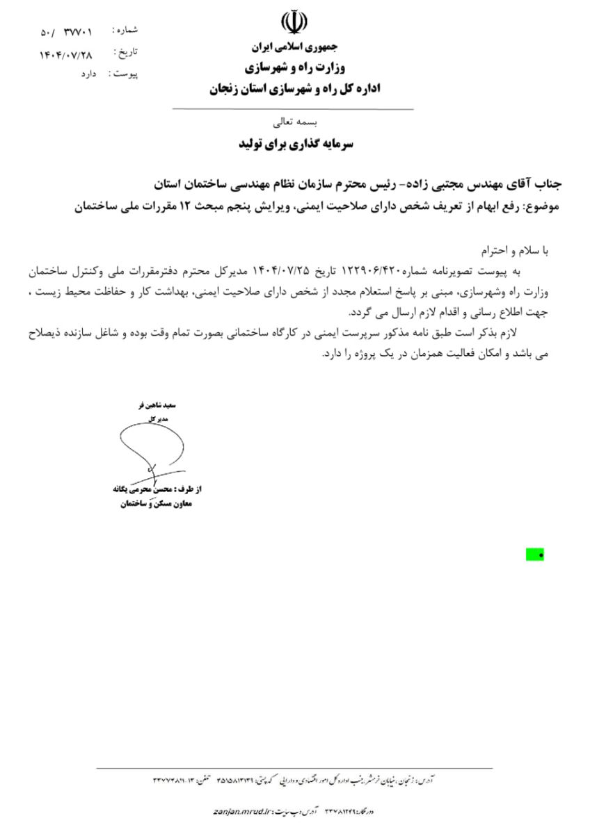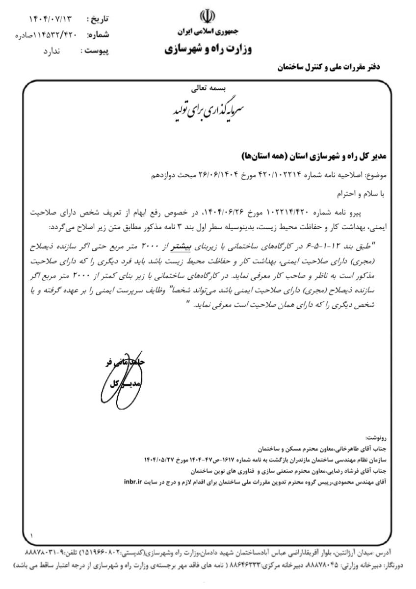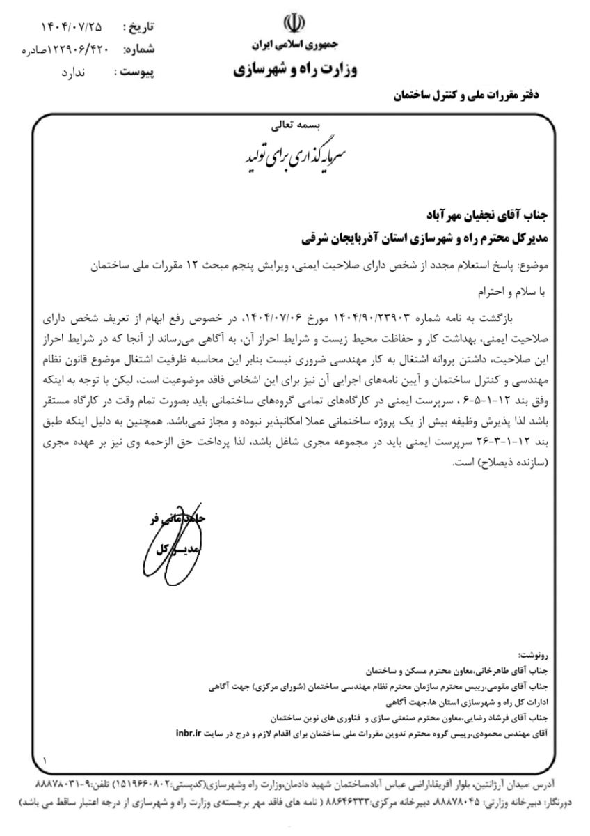 رفع ابهام از تعریف شخص دارای صلاحیت ایمنی و ویرایش پنجم مبحث 12 مقررات ملی ساختمان