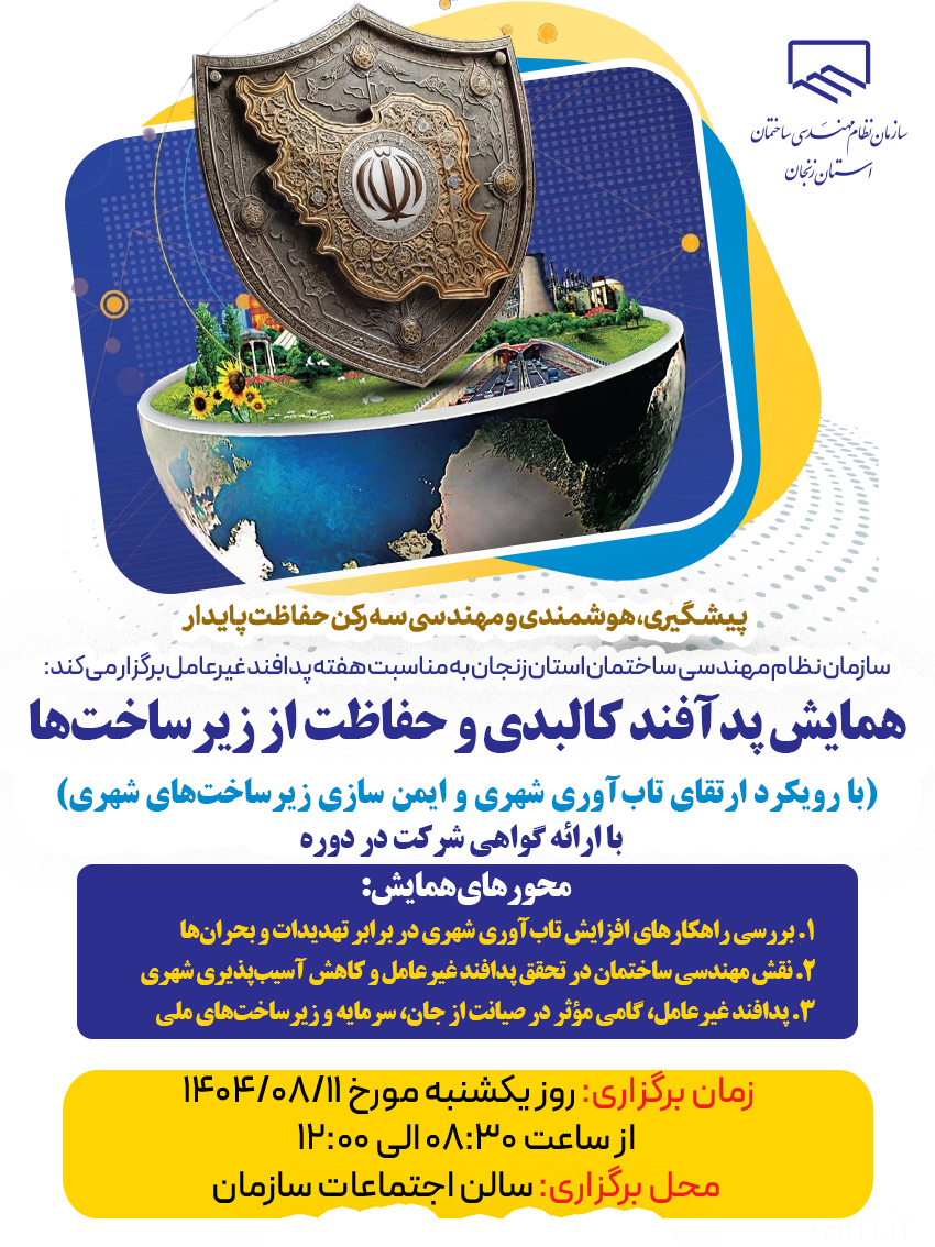 ⚡️سازمان نظام مهندسی ساختمان استان زنجان به مناسبت هفته پدافند غیرعامل برگزار میکند: