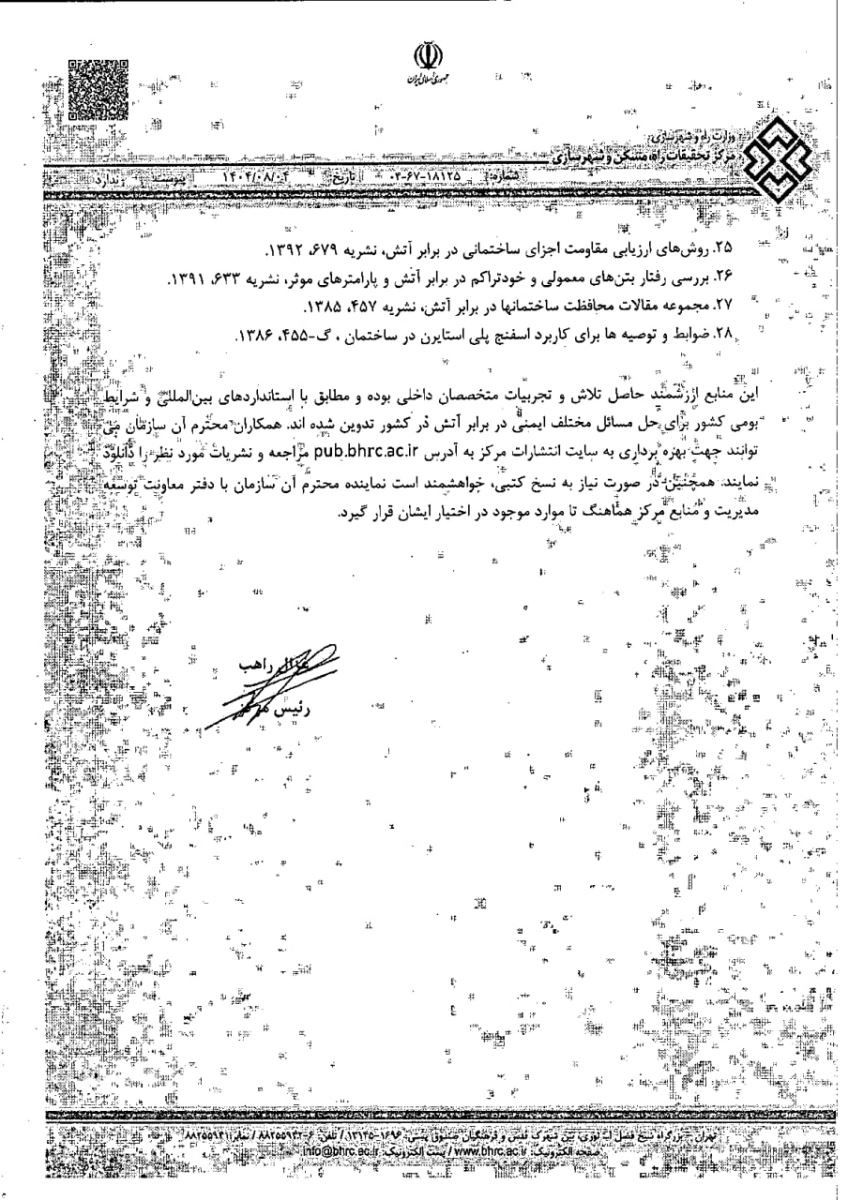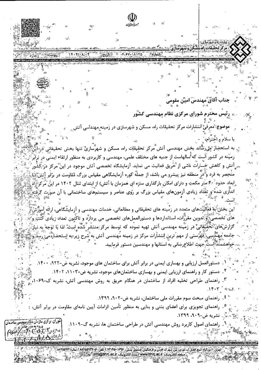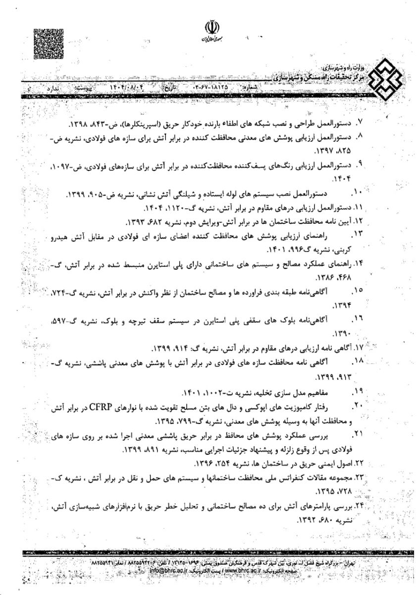 ⬅️فهرست انتشارات مرکز تحقیقات راه ، مسکن وشهرسازی در خصوص مهندسی آتش