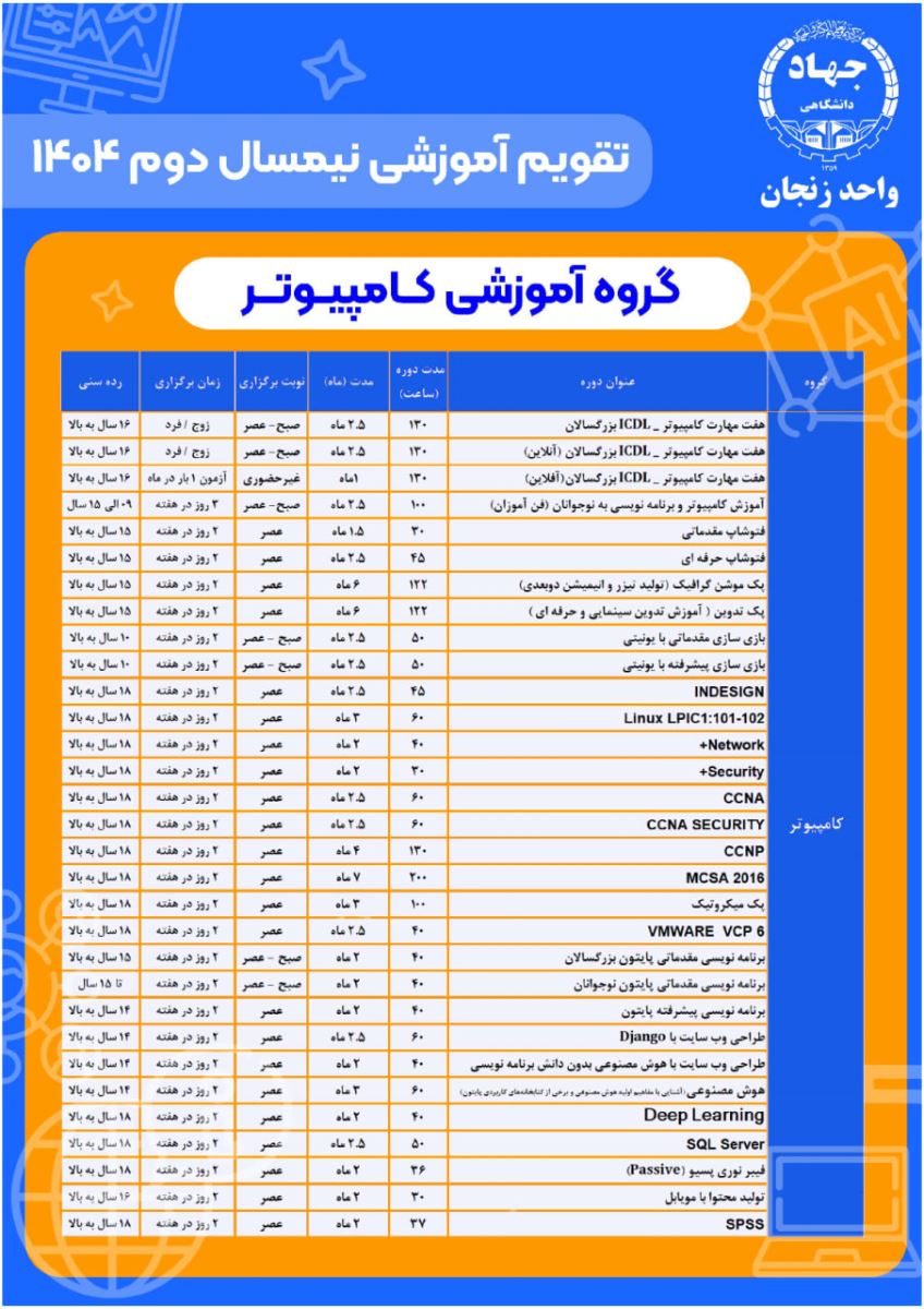 🔶️🔸️اعلام تقویم دورههای آموزشی جهاددانشگاهی در نیمسال دوم ١٤٠٤