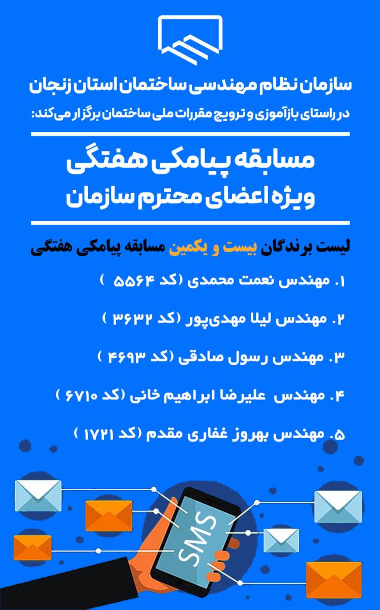 اعلام نتایج قرعه کشی بیست و یکمین مسابقه پیامکی هفتگی