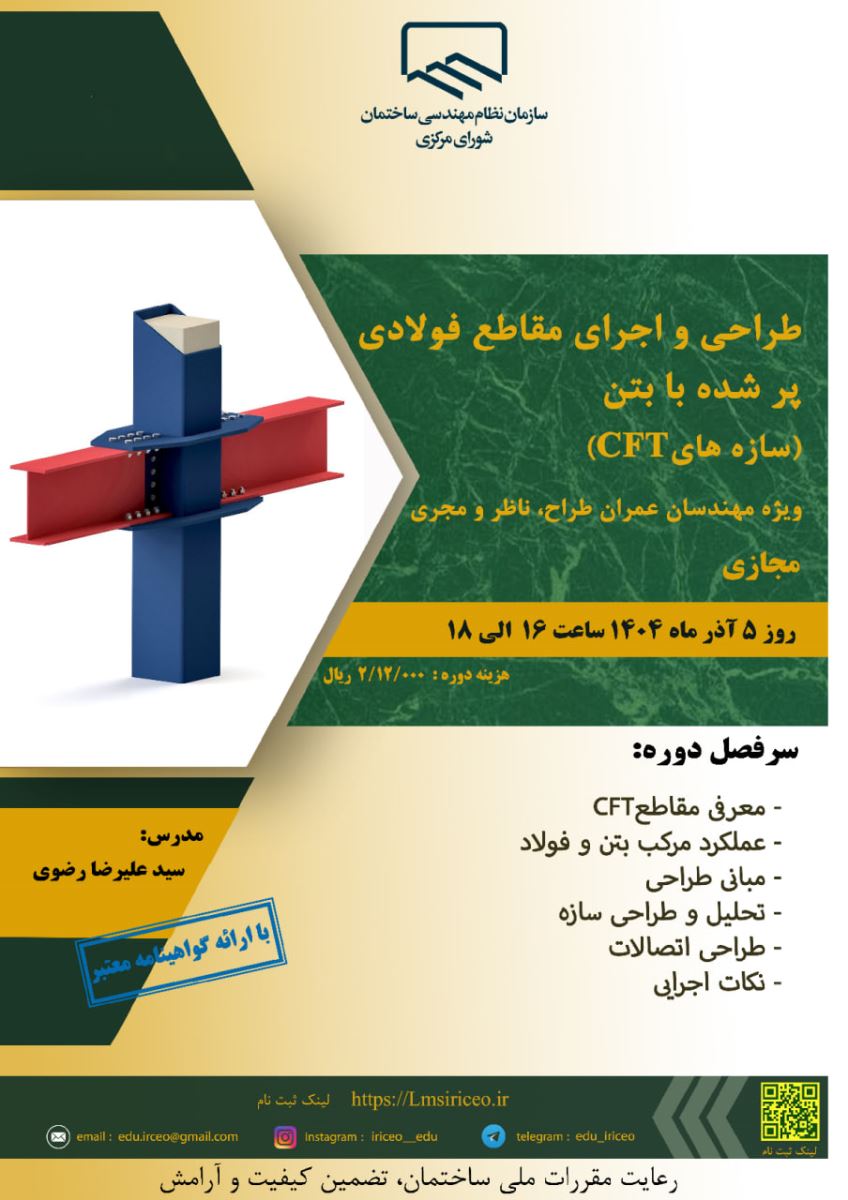 دوره آموزشی طراحی و اجرای مقاطع فولادی پر شده با بتن (سازه‌های CFT)