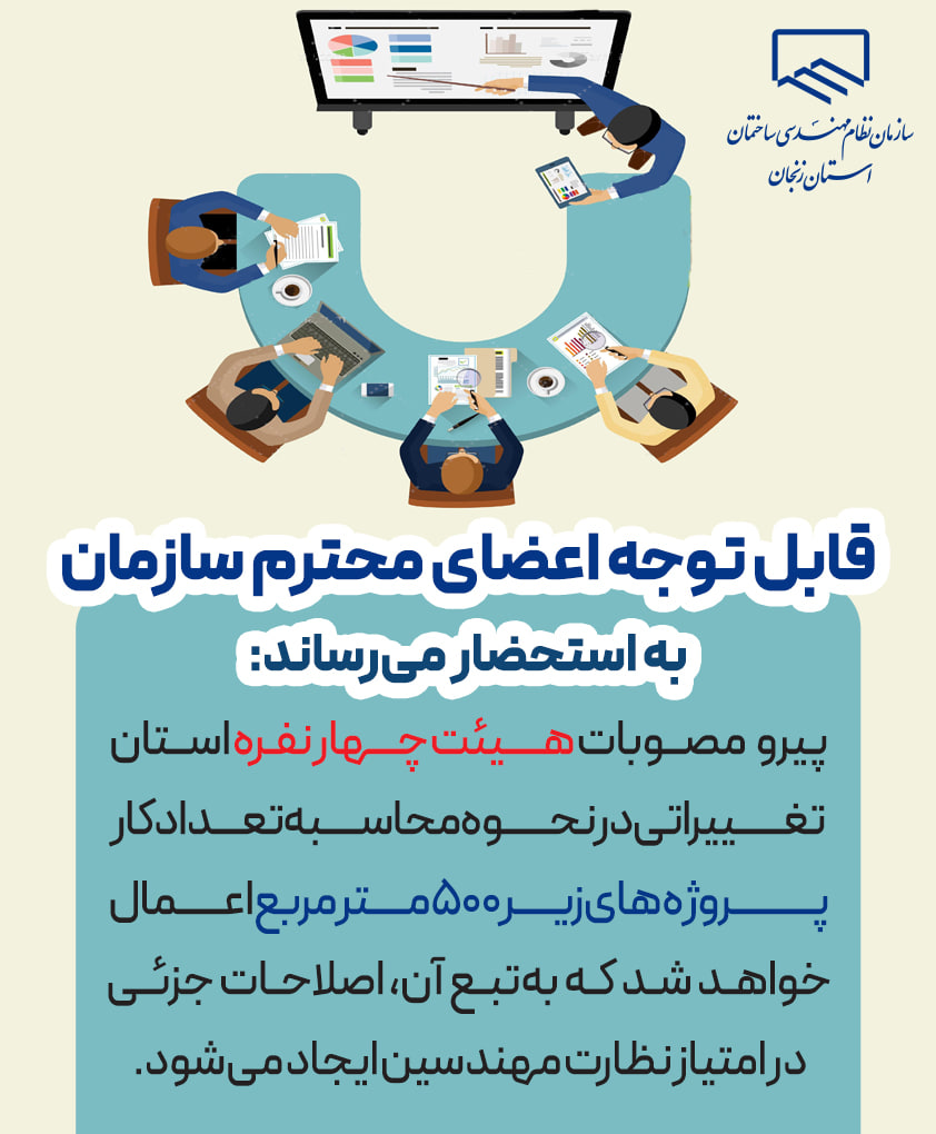 اصلاحات جزئی در امتیاز نظارت مهندسین به جهت اجرای مصوبات هیئت چهار نفره استان