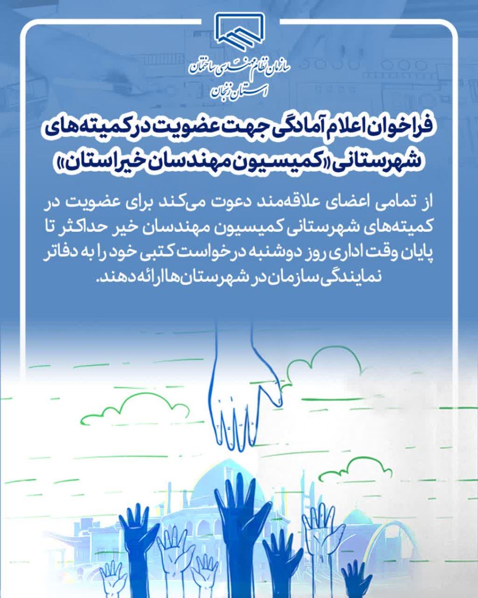 فراخوان عضویت در کمیتههای شهرستانی «کمیسیون مهندسان خیر استان»