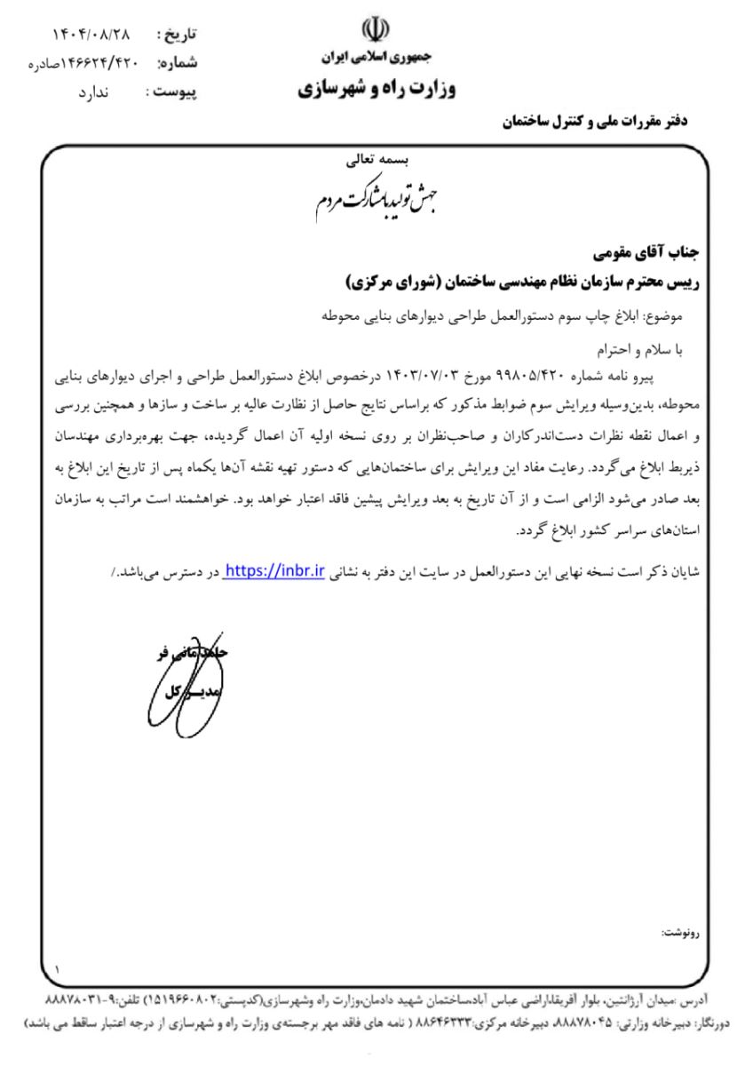 ابلاغیه دفتر مقررات ملی و کنترل ساختمان: