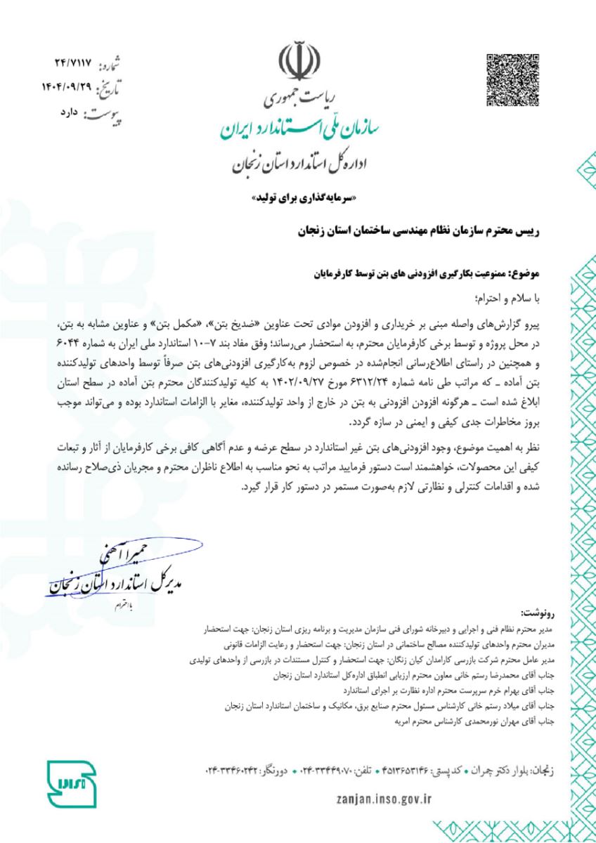 ⚠️ممنوعیت بکارگیری افزودنی های بتن توسط کارفرمایان