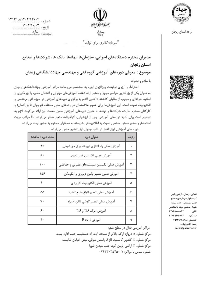 ⚜️معرفی دوره های آموزشی گروه فنی و مهندسی جهاددانشگاهی زنجان