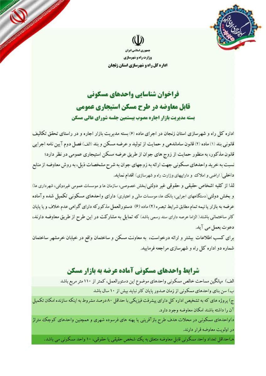 ♻️فراخوان شناسایی واحدهای مسکونی قابل معاوضه در طرح مسکن استیجاری عمومی
