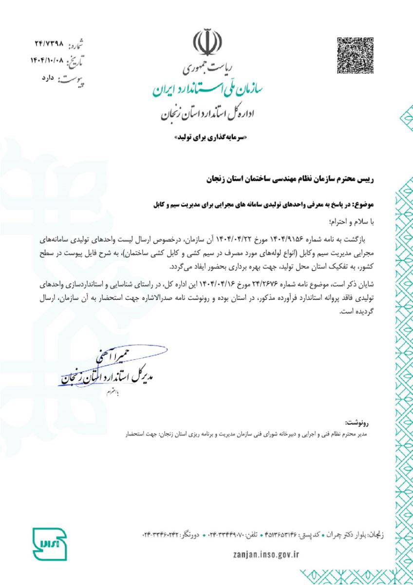 لیست واحدهای تولیدی سامانههای مجرایی مدیریت سیم و کابل