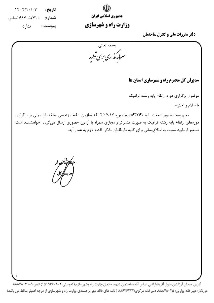 ✴️برگزاری دوره ارتقا پایه رشته ترافیک