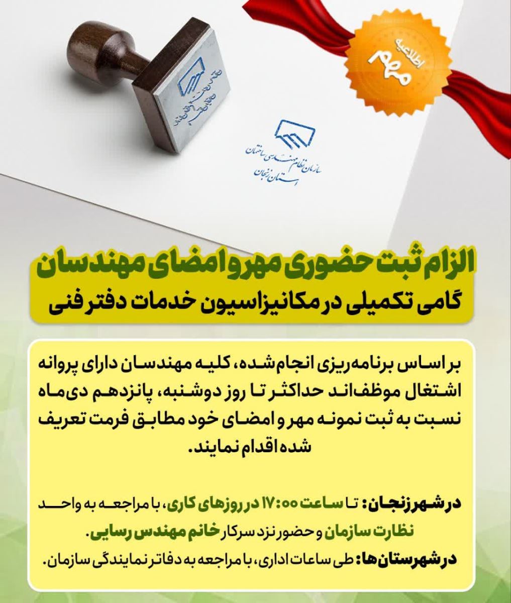 ♻️الزام ثبت حضوری مهر و امضای مهندسان در محل سازمان