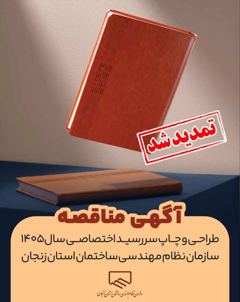 تمدید آگهی مناقصه طراحی و چاپ سررسید اختصاصی سال ۱۴۰۵ سازمان نظام مهندسی ساختمان استان زنجان