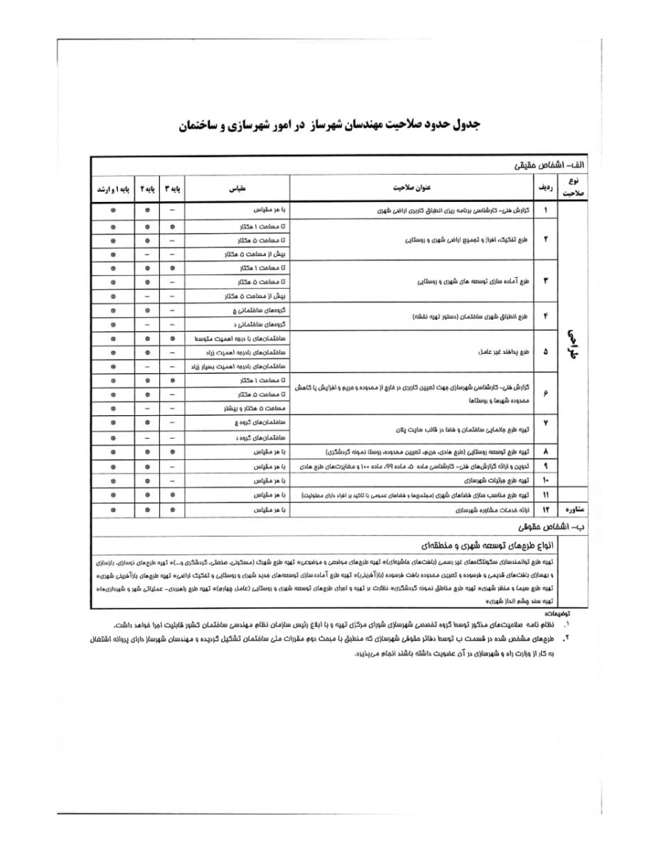 💢ابلاغ جدول شماره 14 مبحث دوم مقررات ملی ساختمان ( جدول حدود صلاحیت مهدسان شهرساز در امور شهرسازی وساختمان )