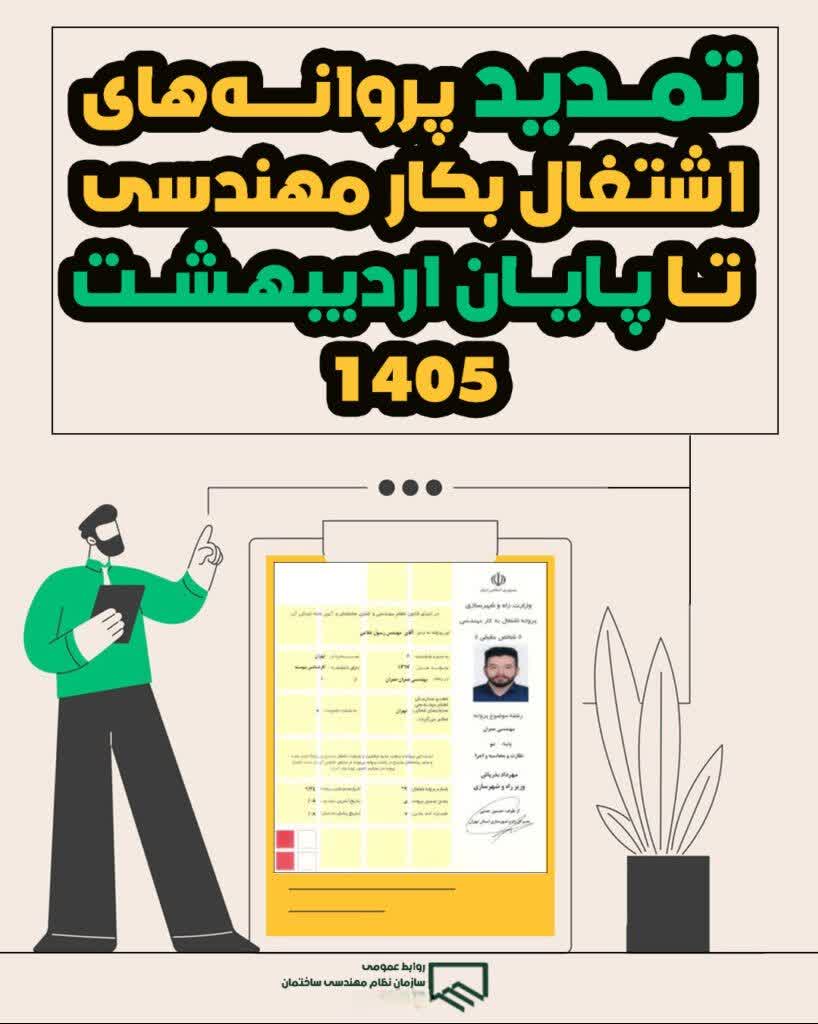 تمدید اعتبار پروانههای اشتغال به کار مهندسی تا پایان اردیبهشت ۱۴۰۵