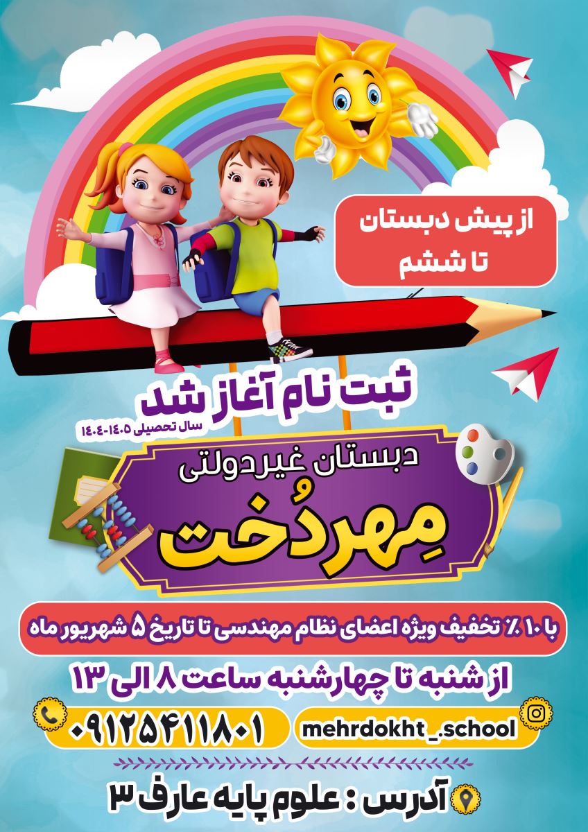 دبستان غیردولتی مهردخت (خدمات آموزشی از پیش دبستان تا ششم)