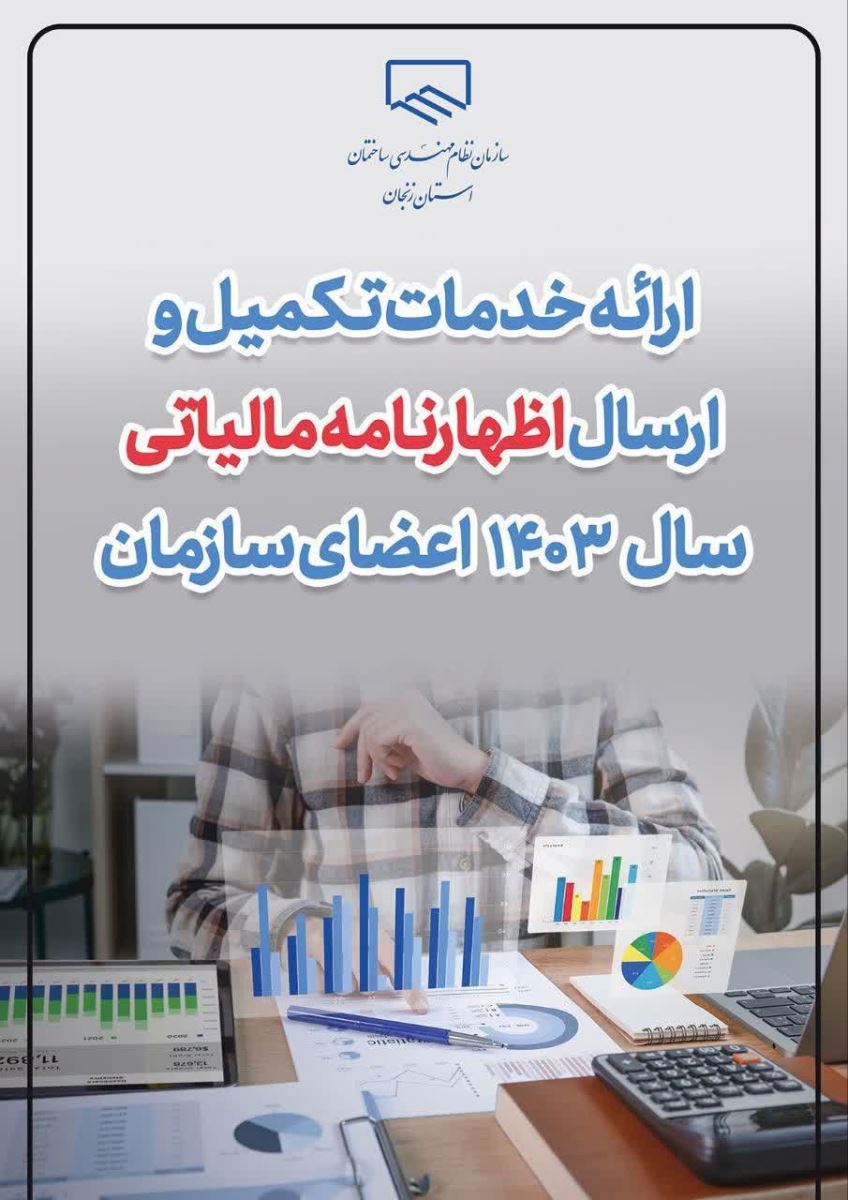 ♻️ارائه خدمات ثبت و ارسال اظهارنامه مالیاتی سال ۱۴۰۳ مهندسان ❇️سازمان نظام مهندسی ساختمان استان زنجان به منظور سهیل امور مالیاتی و رفاه اعضای محترم در تنظیم و ارسال اظهارنامه، خدمات ثبت و ارسال الکترونیکی اظهارنامه های مالیاتی عملکرد سال ۱۴۰۳ را در محل سازمان ارائه می نماید.