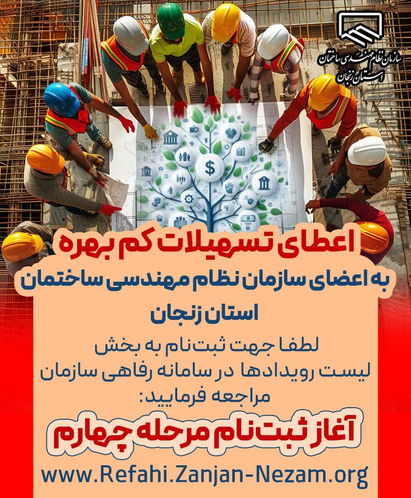 🔊اعطای تسهیلات کم‌بهره به اعضای سازمان نظام مهندسی ساختمان استان زنجان