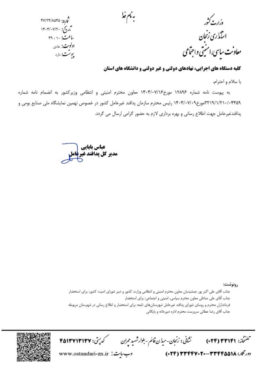 🔆نهمین نمایشگاه ملی صنایع بومی و پدافند غیرعامل