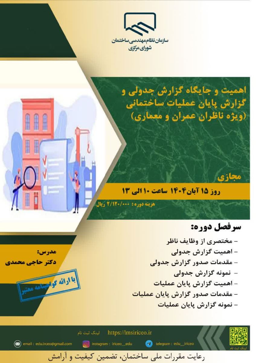 ☀️دوره آموزشی " اهمیت و جایگاه گزارش جدولی و گزارش پایان عملیات ساختمانی "
