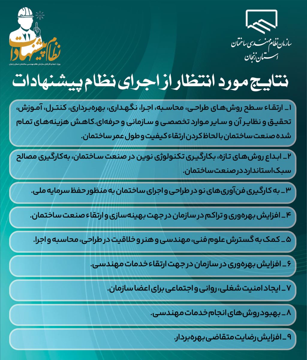 بدین‌ترتیب، راه اندازی این سامانه در چارچوب قانون و مقررات انجام شده و تلاش می‌گردد تا نظرات، ایده‌ها و تجربیات مهندسان و مراجعان به‌عنوان سرمایه فکری سازمان، مورد استفاده قرار گیرد.