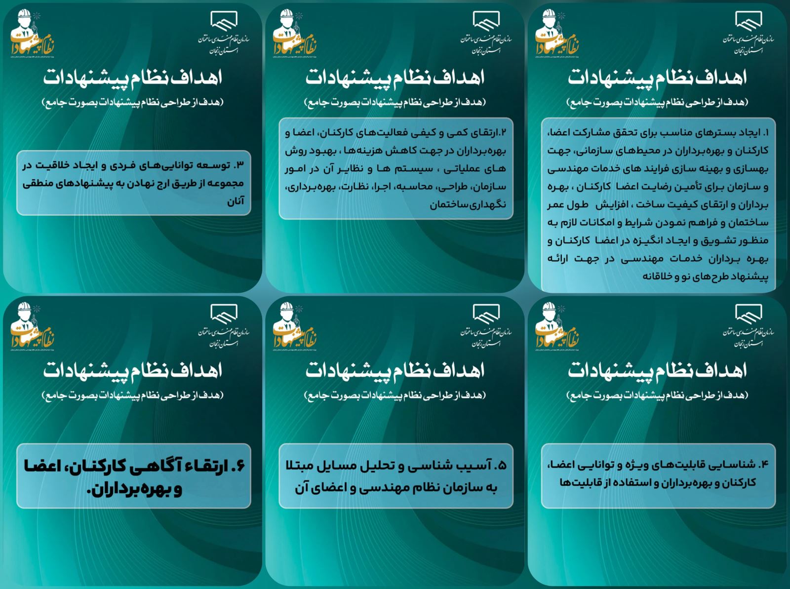 🔺️هدف از این اقدام، ترویج فرهنگ مشارکت، استفاده از اندیشه جمعی و ایجاد بستری برای بهبود مستمر عملکرد، ارتقای رضایتمندی اعضا، کارکنان و مراجعان سازمان و افزایش شفافیت امور می‌باشد.