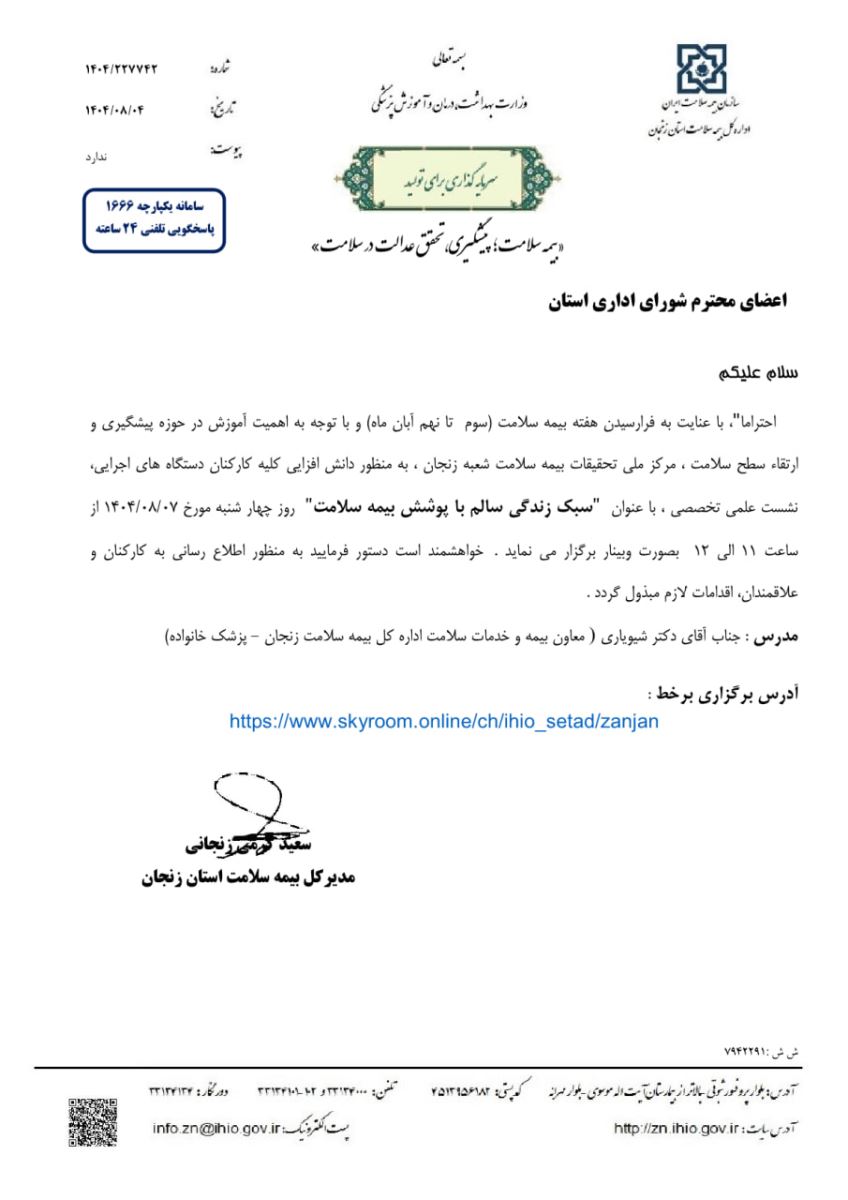 ❇️ وبینار علمی و تخصصی سبک زندگی سالم با پوشش بیمه سلامت