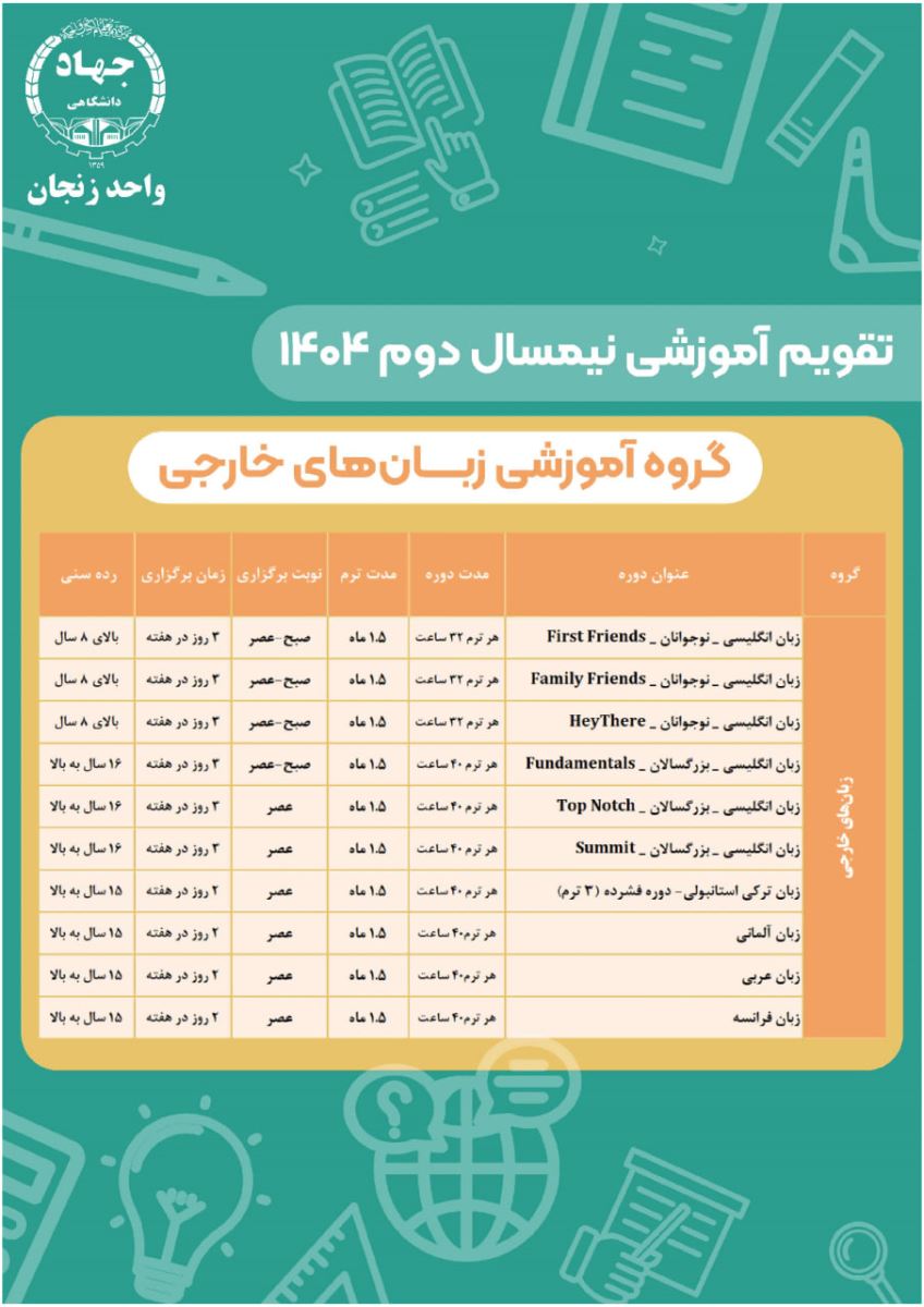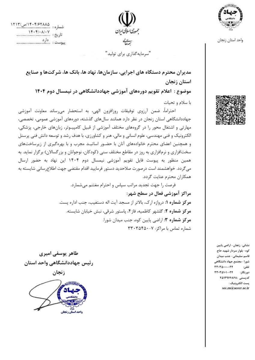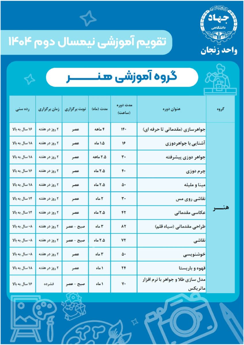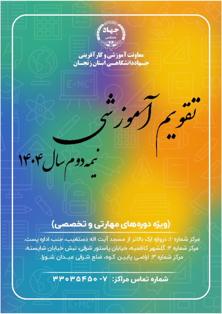 اعلام تقویم دورههای آموزشی جهاددانشگاهی در نیمسال دوم ١٤٠٤