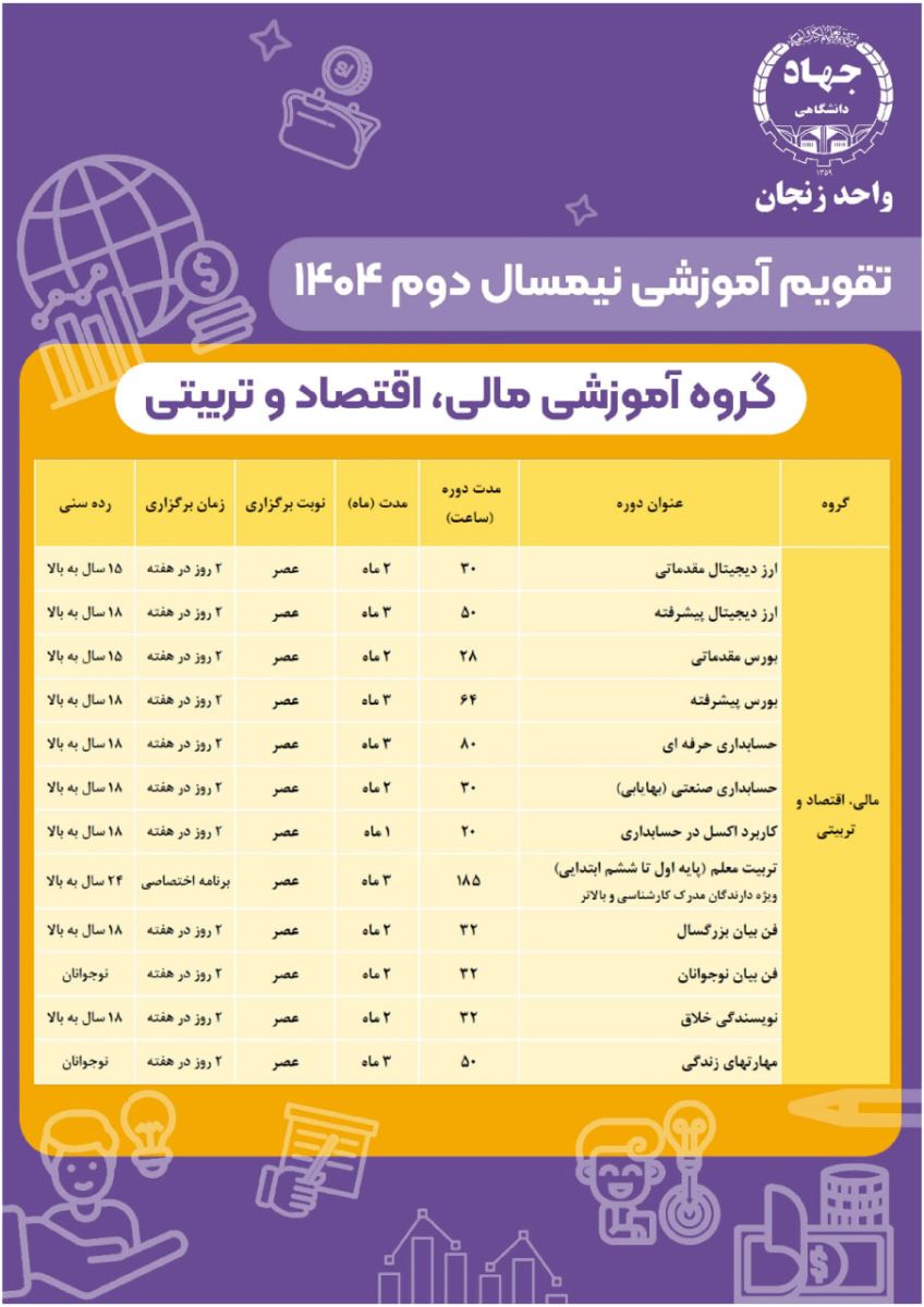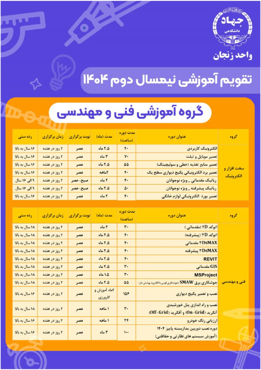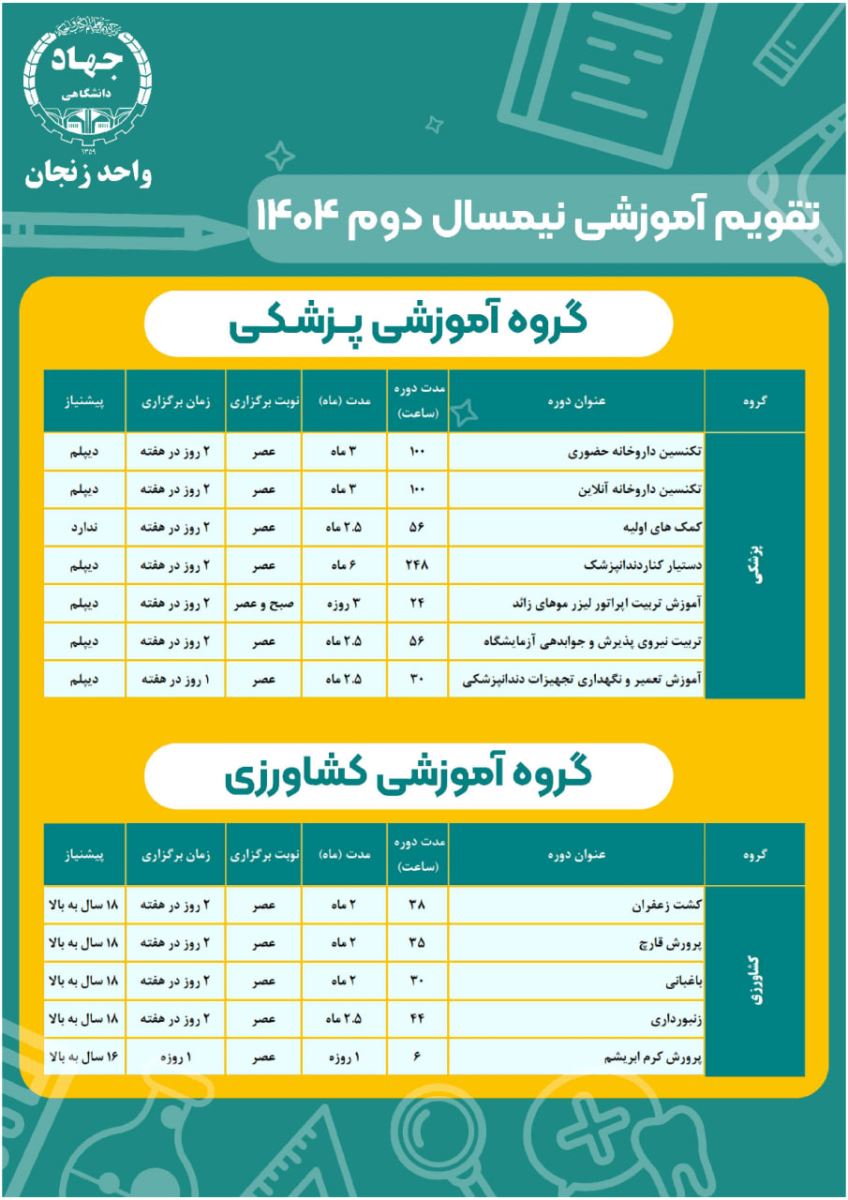 🔶️🔸️اعلام تقویم دورههای آموزشی جهاددانشگاهی در نیمسال دوم ١٤٠٤