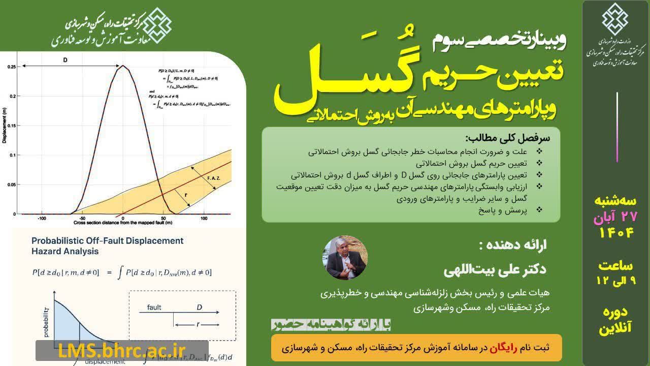 وبینار تخصصی تعیین حریم گسل و پارامترهای مهندسی آن به روش احتمالاتی