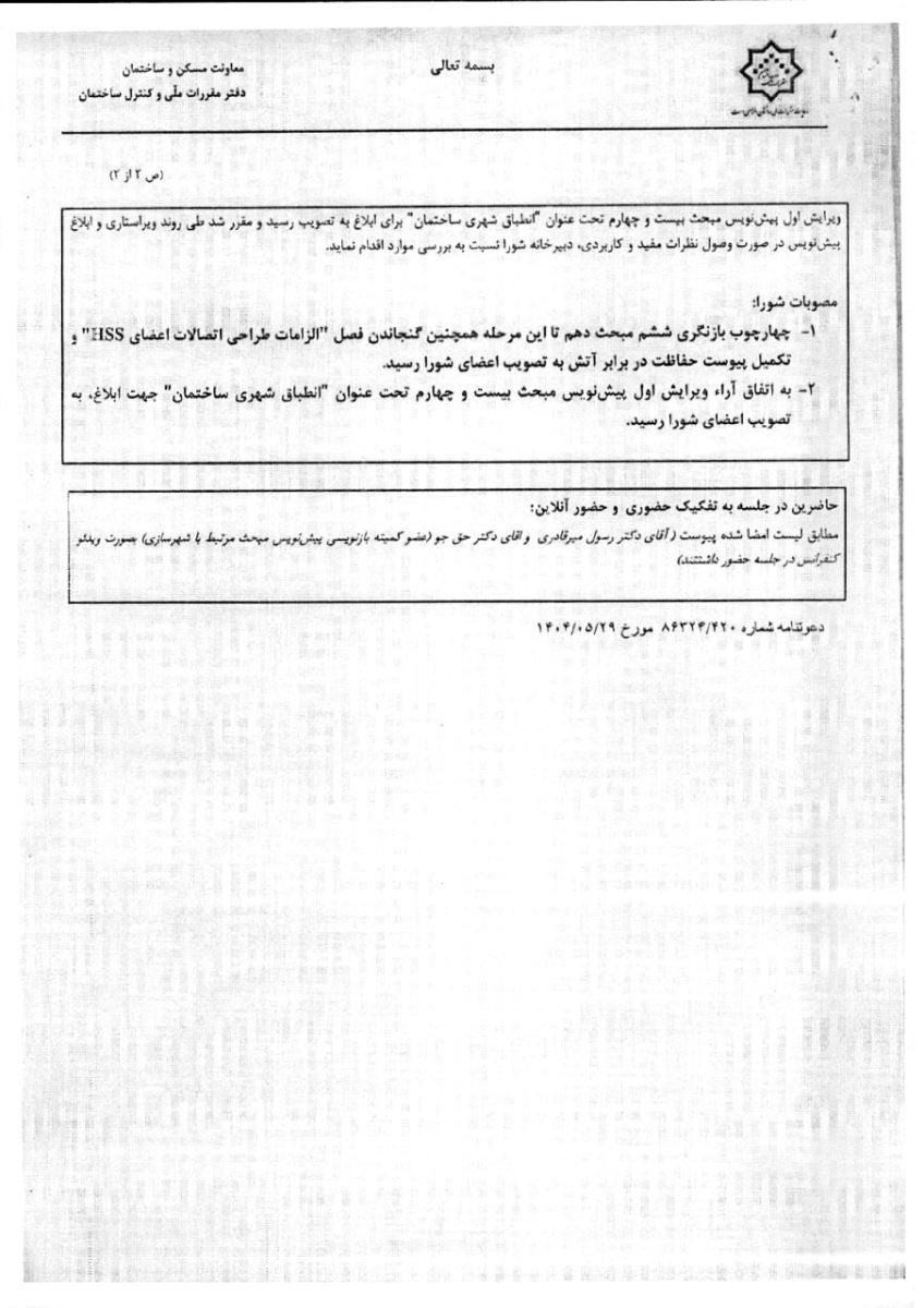 ✳️اولین ویرایش مبحث بیست‌و‌چهارم مقررات ملی ساختمان با عنوان «انطباق شهری ساختمان» از سوی وزیر راه و شهرسازی ابلاغ شد.
