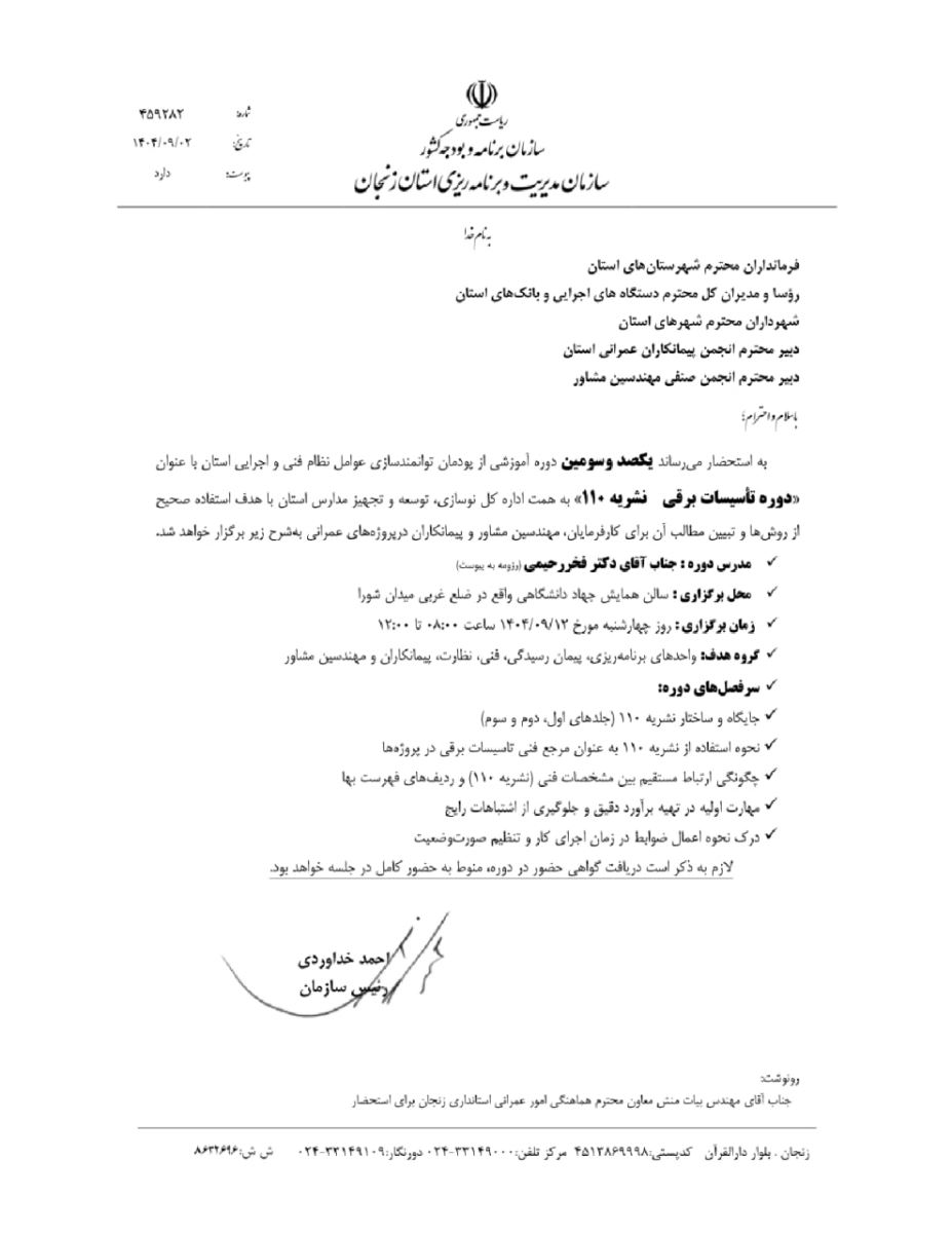 سمینار «دوره تاسیسات برقی نشریه 110»