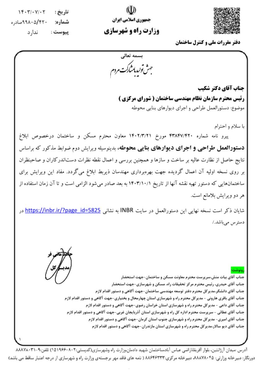 ابلاغیه دفتر مقررات ملی و کنترل ساختمان: