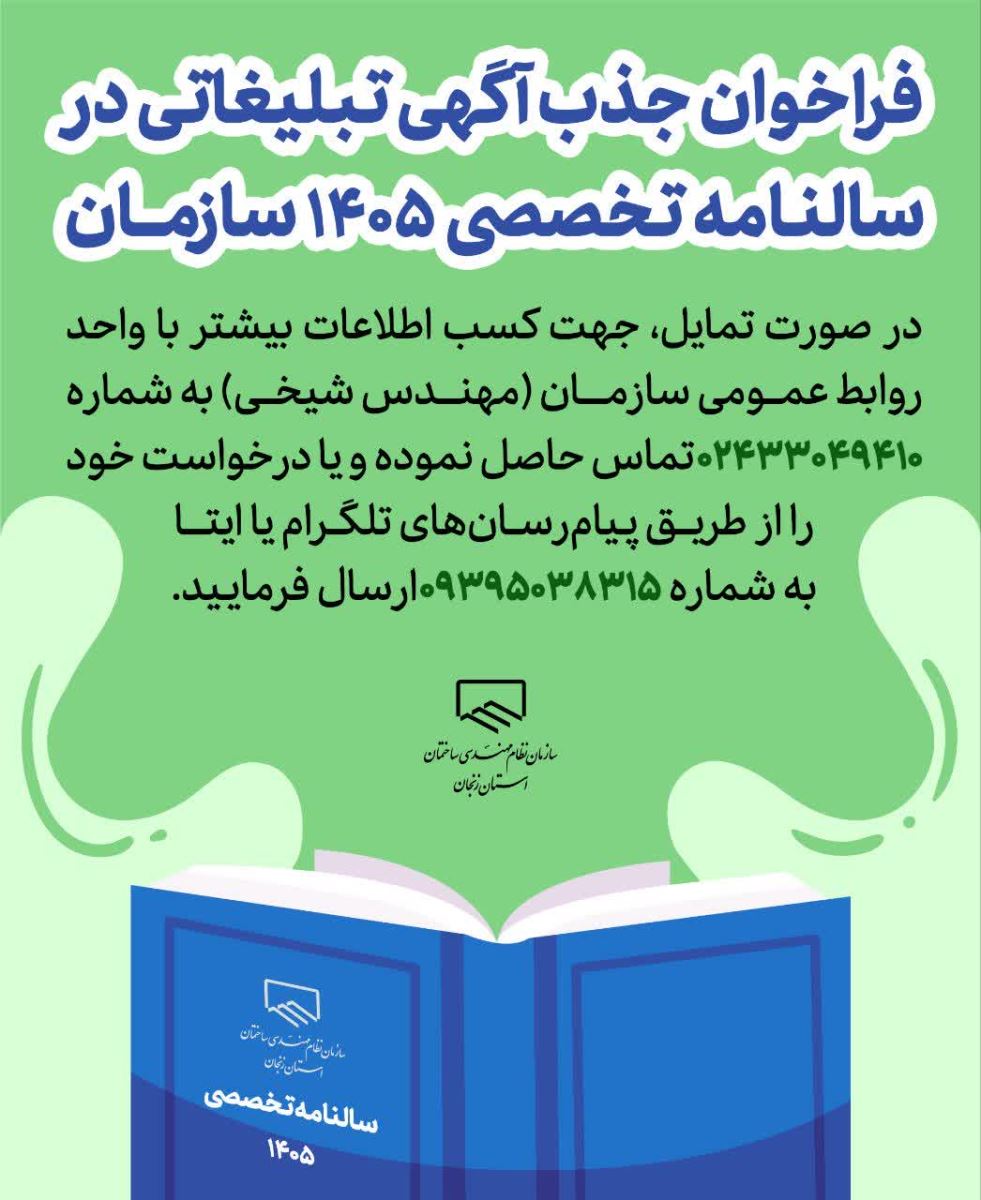 فراخوان جذب آگهی تبلیغاتی در سالنامه تخصصی ۱۴۰۵ سازمان نظام مهندسی ساختمان استان زنجان