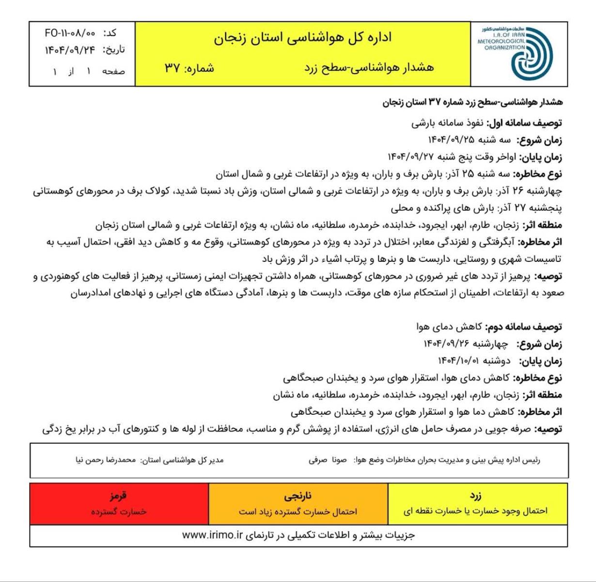 🟠اداره کل هواشناسی استان زنجان