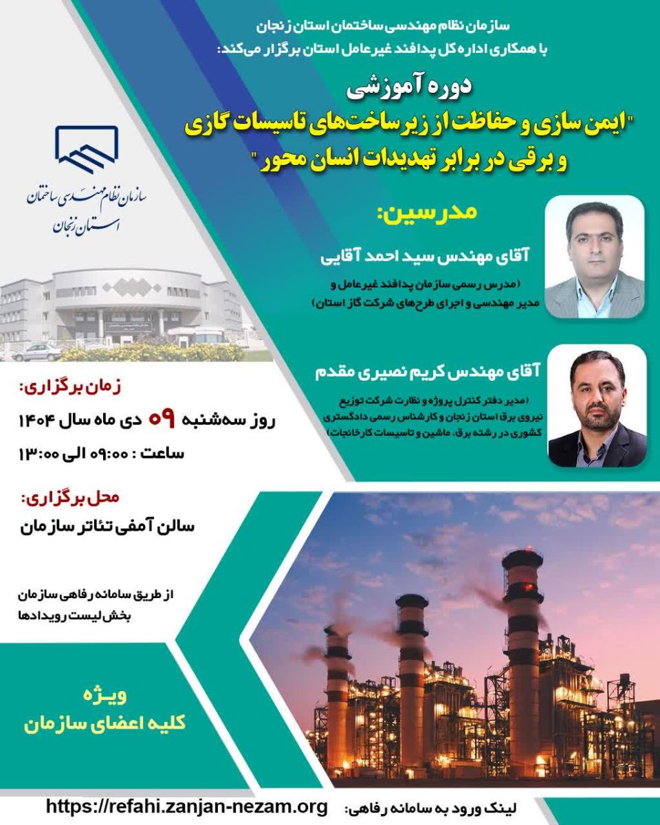 ⚜️ سازمان نظام مهندسی ساختمان استان زنجان با همکاری اداره کل پدافند غیرعامل استان برگزار میکند: