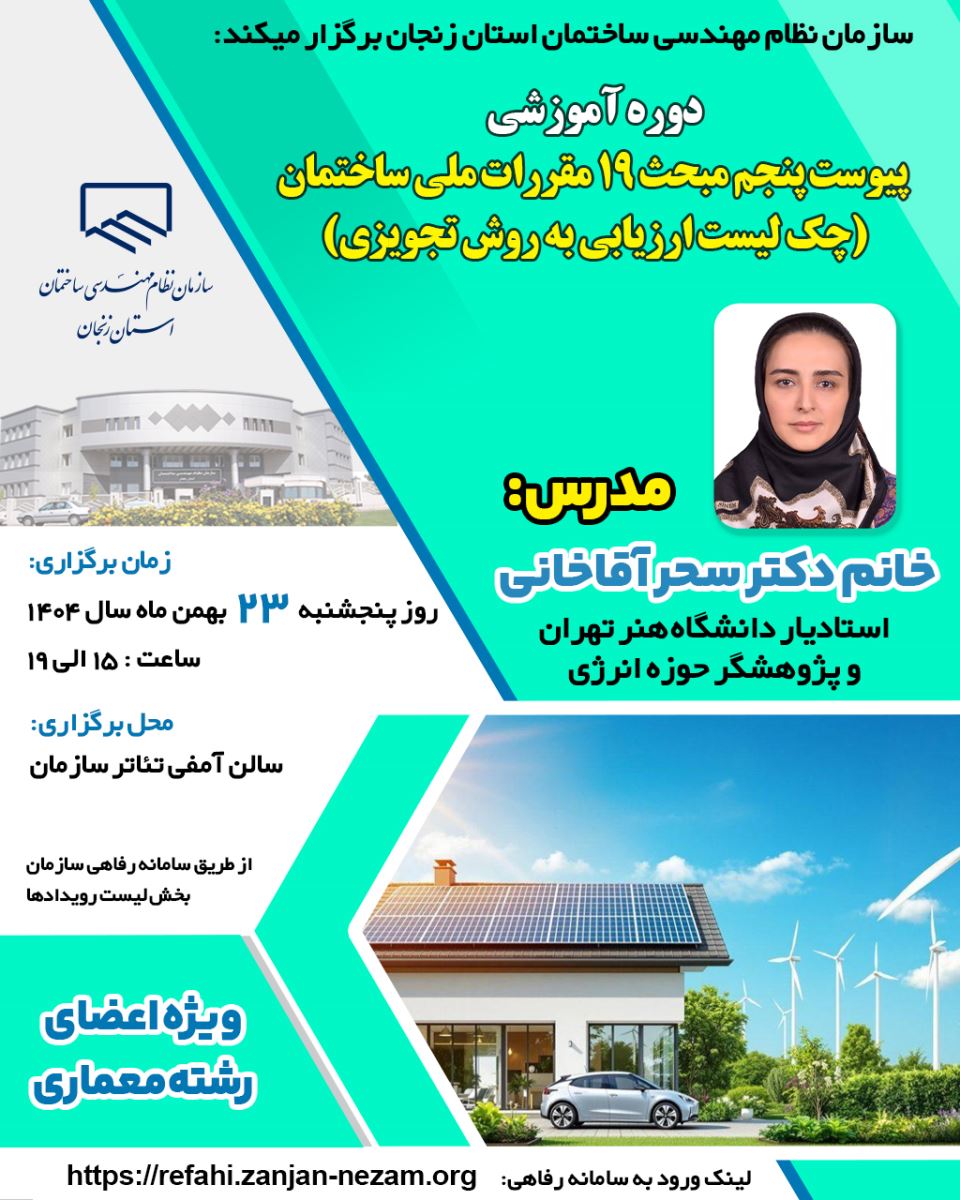 ⚜️سازمان نظام مهندسی ساختمان استان زنجان برگزار میکند: