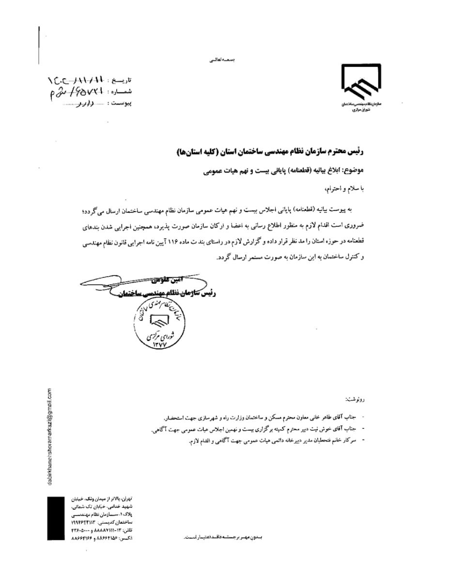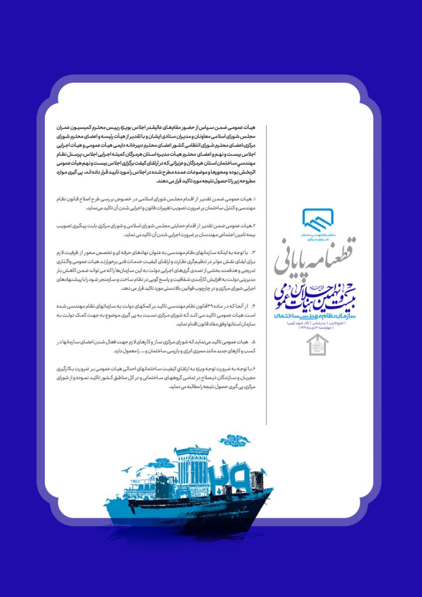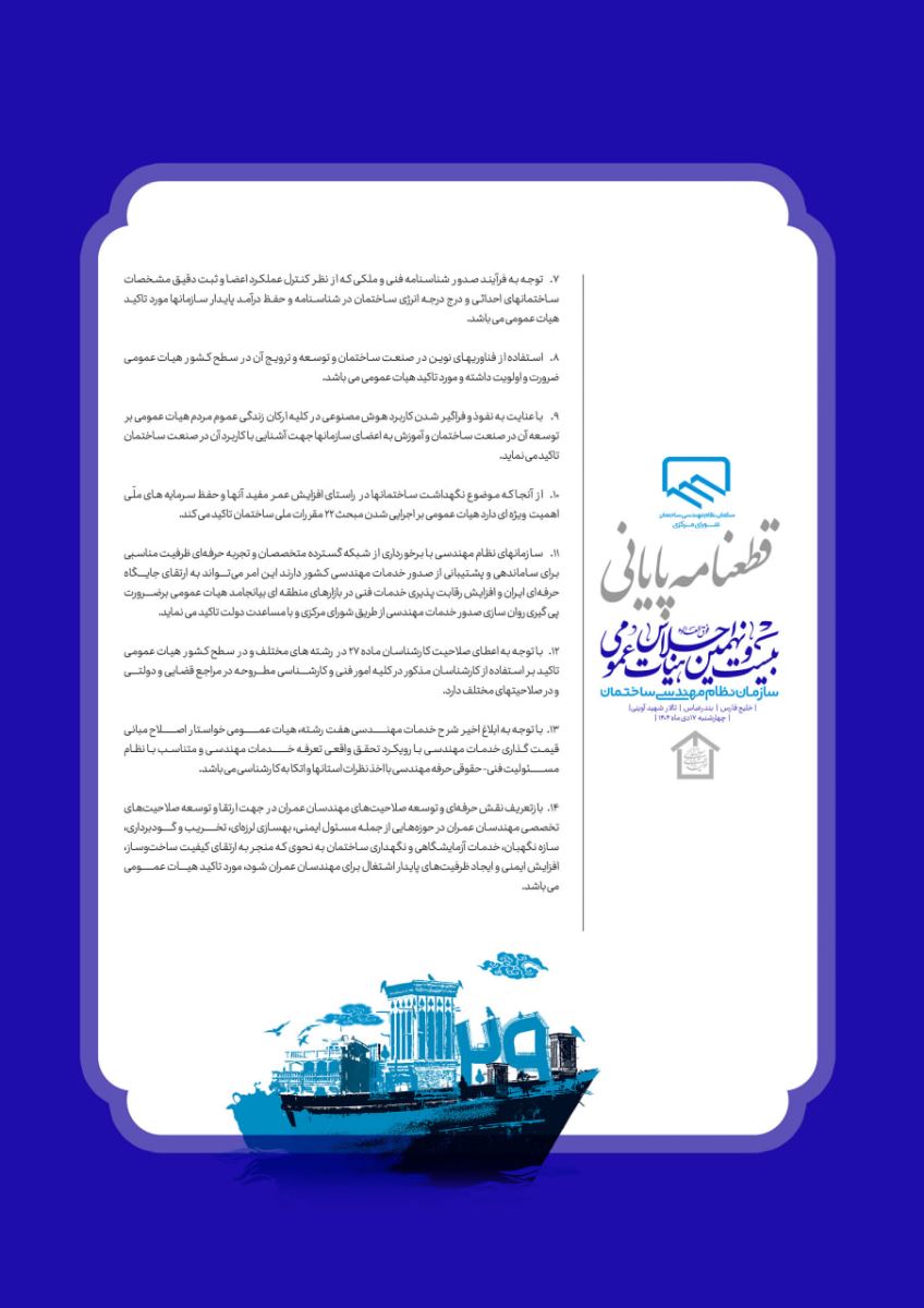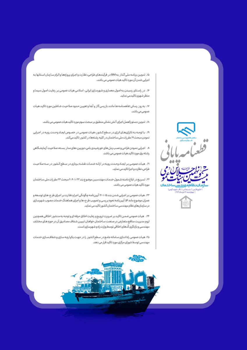 💠قطعنامه بیست و نهمین اجلاس هیأت عمومی سازمان نظام مهندسی ساختمان