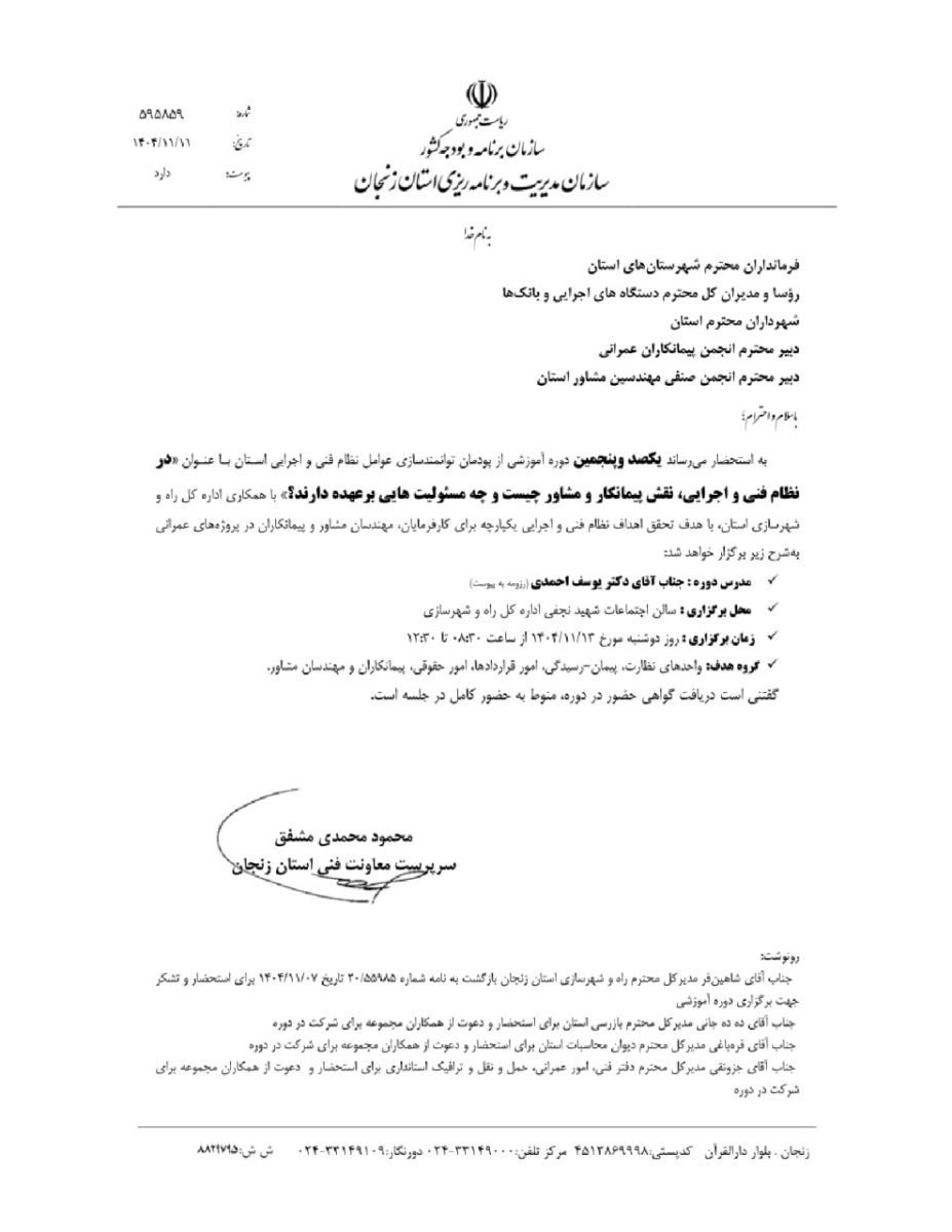 ↕️دعوتنامه هشتمین دوره آموزشی نظام فنی و اجرایی در سال 1404