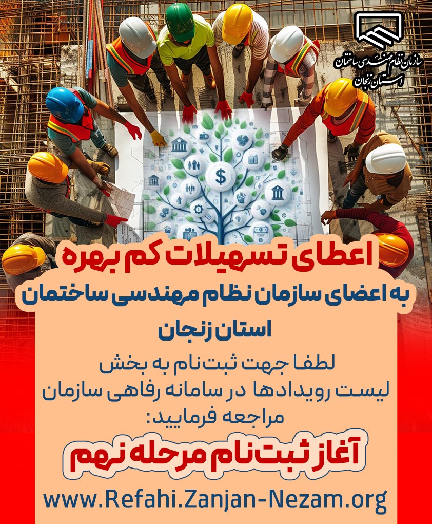 🔊اعطای تسهیلات کمبهره به اعضای سازمان نظام مهندسی ساختمان استان زنجان
